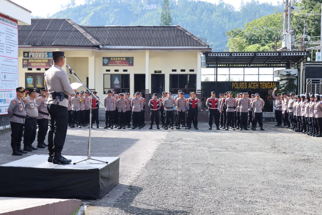 Hadir dalam kegiatan tersebut Wakapolres Aceh Tengah Kompol Samsir,S.H, Pejabat Utama, para Perwira staf, Para Kapolsek dan personil Polres Aceh Tengah yg terlibat pengamanan.