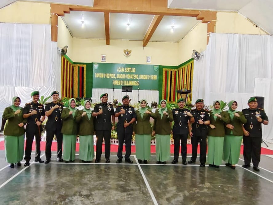 Upacara tersebut melibatkan tiga Dandim jajaran Korem 011/Lilawangsa yang melakukan serah terima jabatan, yakni Dandim 0102/Pidie, Dandim 0106/Aceh Tengah, dan Dandim 0119/Bener Meriah. Serah Terima jabatan ditandai dengan penyerahan simbol jabatan dan tongkat komando dari pejabat komandan lama kepada komandan baru, yang menandakan sebagai simbul pergantian kepemimpinan di jajaran Korem 011/Lilawangsa.