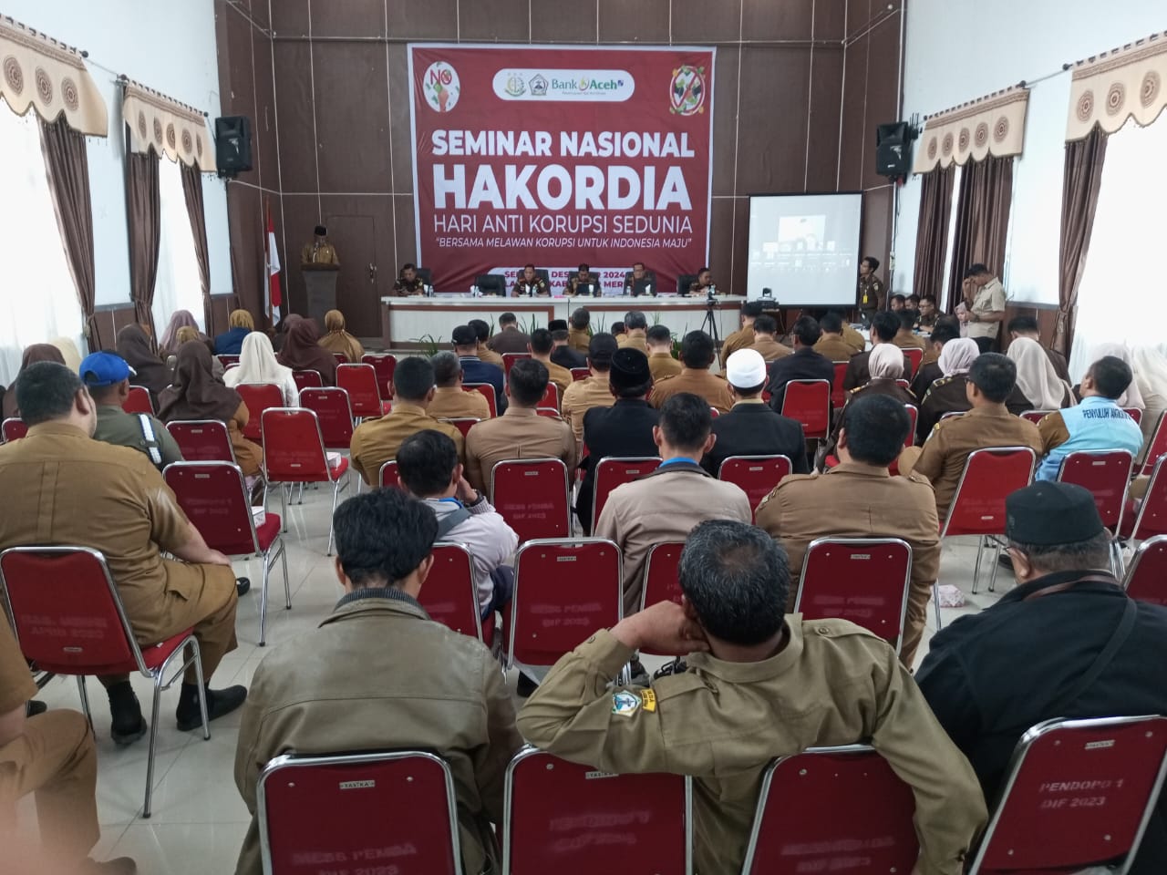Kami sebagai pemimpin daerah Kabupaten Bener Meriah, sangat menyadari bahwa tugas kita untuk menjaga agar anggaran negara yang seharusnya digunakan untuk kesejahteraan rakyat tidak diselewengkan oleh oknum-oknum yang tidak bertanggung jawab, demikian disampaikan Pj Bupati Bener Meriah Moch.Tanwier dalam sambutannya yang dibacakan Asisten II Sayutiman, SE,MM pada acara seminar ( 9/11) dalam rangka Hari Anti Korupsi Sedunia ( HAKORDIA ) di Aula Setdakab Bener Meriah.