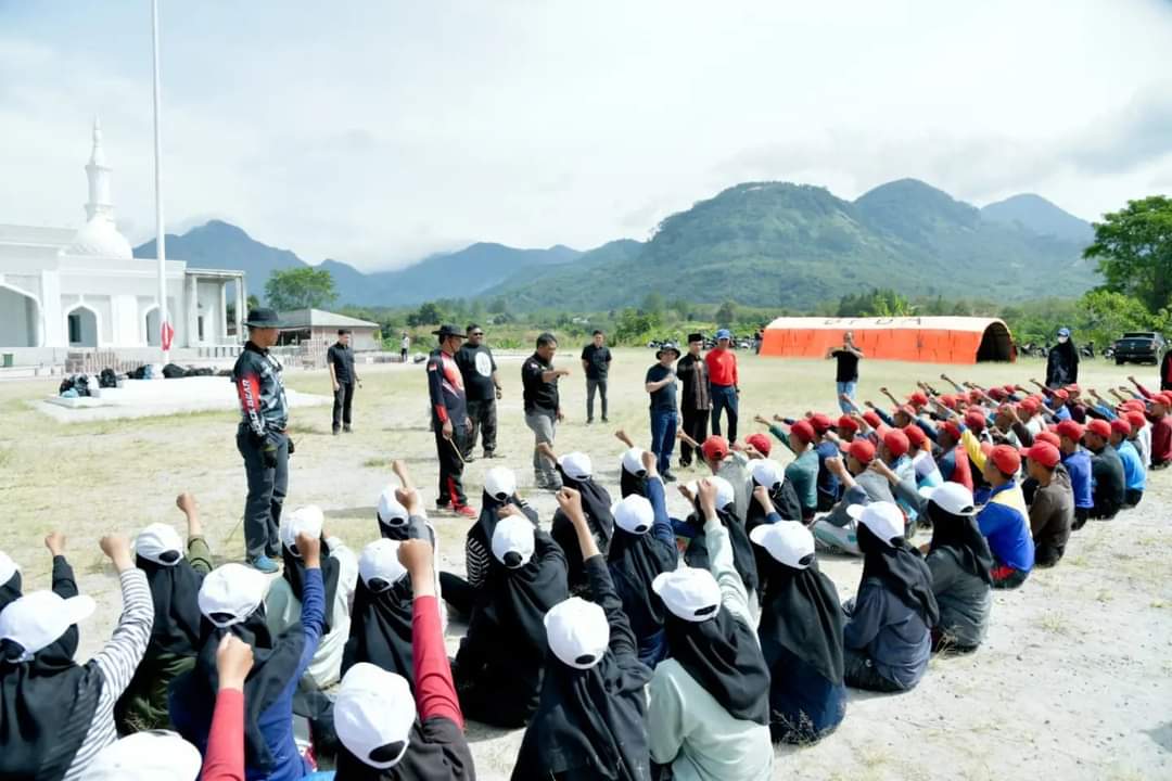 Pj. Bupati Bener Meriah Ir. Mohd. Tanwier, MM memotivasi para peserta Calon Anggota Paskibraka Tahun 2024 yang sedang berlatih di Lapangan Masjid Agung Babussalam. Sabtu (27/07/2024)