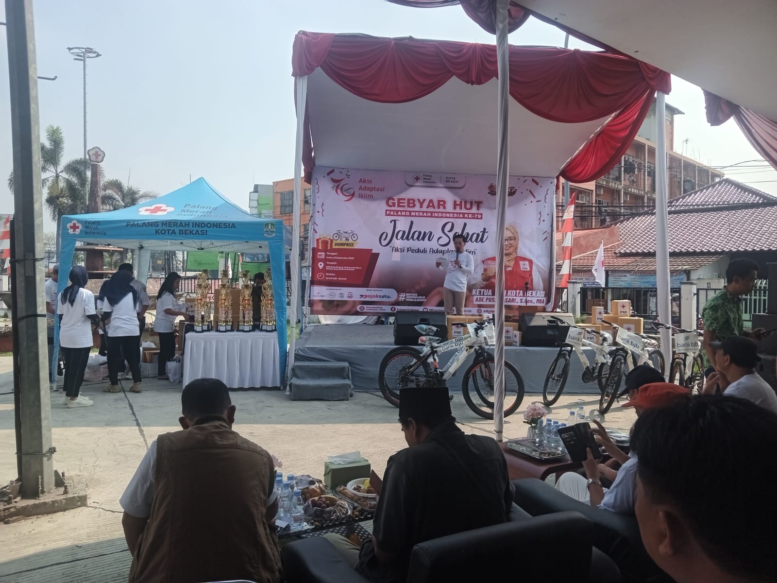Kota Bekasi Jalan Sehat bersama PMI dalam rangka HUT ke 79 juga diikuti oleh pendonor setia,sekolah dan lainya yang selama ini bahu-membahu dengan organisasi lainnya membantu PMI Kota Bekasi dalam memenuhi ketersediaan kantong darah untuk masyarakat