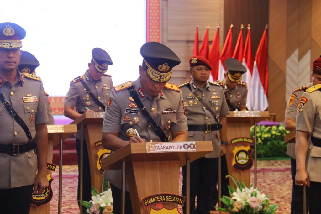 Upacara tersebut dihadiri oleh sejumlah pejabat tinggi, di antaranya Penyidik Tindak Pidana Utama TK I Bareskrim Polri Irjen Pol M. Zulkarnain, S.I.K., M.Si., serta jajaran Pejabat Utama Polda Sumsel dan para Kapolres. Seluruh rangkaian acara berlangsung khidmat dengan penandatanganan berita acara serah terima jabatan dan pakta integritas.