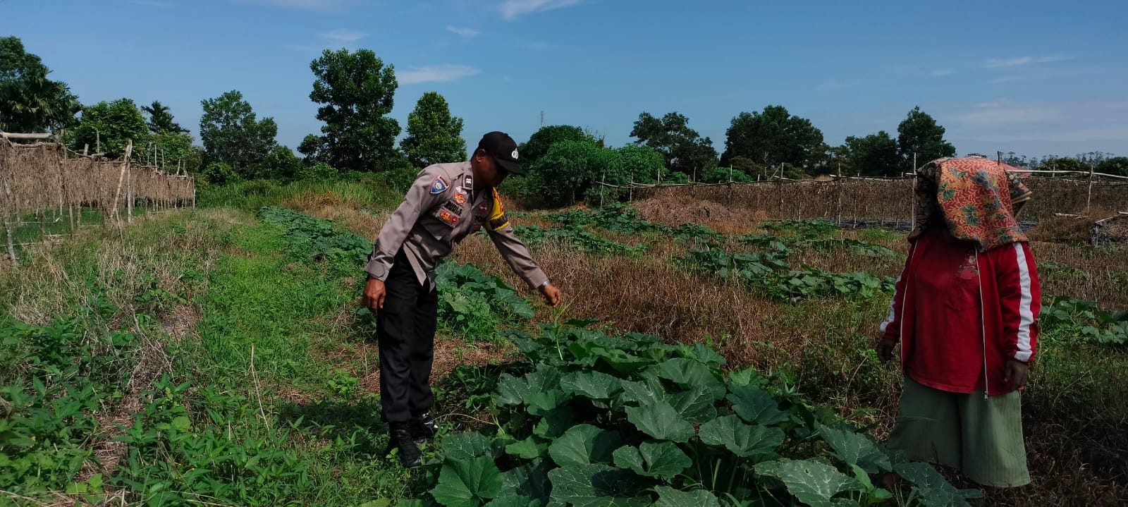 Bhabinkamtibmas Kelurahan Pangkalan Kerinci Kota, Aiptu Rudi Salam, melakukan monitoring ketahanan pangan bergizi berbasis perkarangan di lahan milik Kelompok Tani Mulya Tani, milik Lamhot Nababan, yang terletak di RT 007 RW 008, Kelurahan Pangkalan Kerinci Kota, Rabu pagi, 16 Juni 2025.