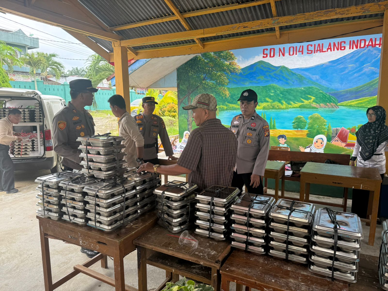 Polsek Pangkalan Kuras melakukan pengawasan langsung terhadap pelaksanaan Program Makan Bergizi Gratis (MBG) di tiga sekolah yakni SDN 014 dan SMPN 2 Desa Sialang Indah serta SMKN 1 Desa Terantang Manuk, Rabu (22/10/2025).