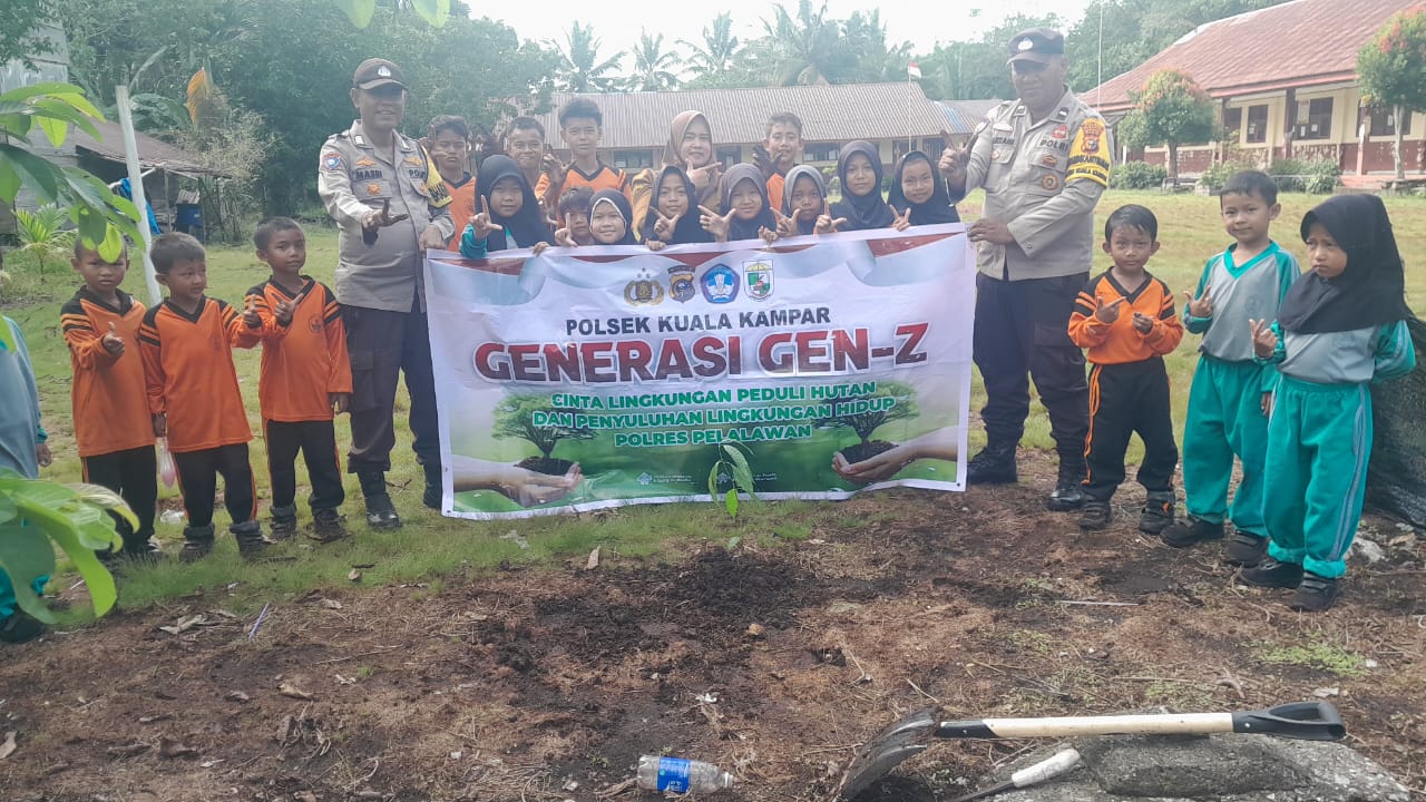 Penanaman bibit pohon berlangsung di SD Negeri 024 Teluk Dalam, Kecamatan Kuala Kampar. Dalam kegiatan ini, personel Polsek Kuala Kampar bersama para guru dan siswa menanam dua bibit pohon mangga di lingkungan sekolah.