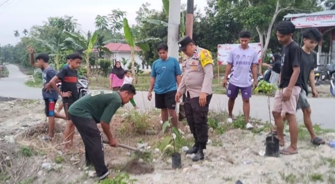 Polisi di Pelalawan Tanam Pohon dan Bangun Lapangan Voli Bareng Warga
