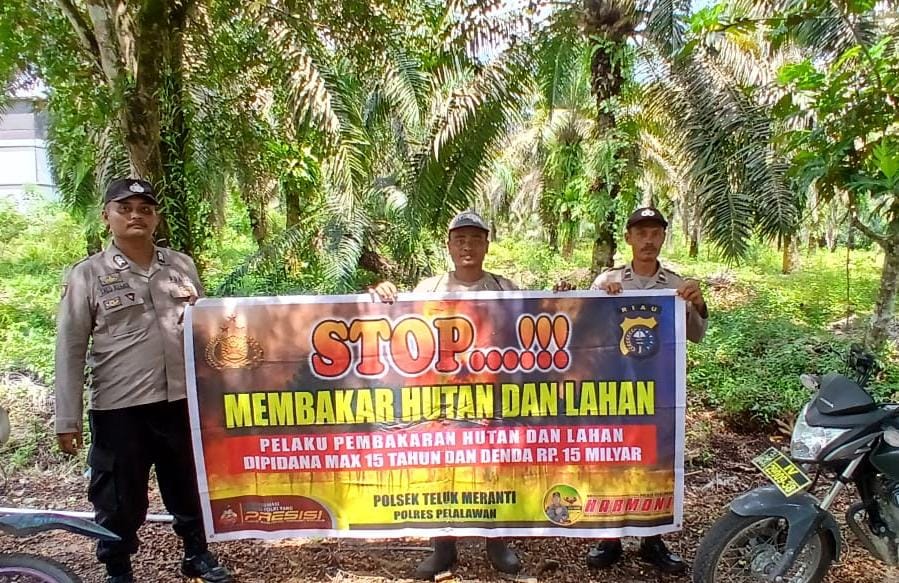 Dalam upaya mencegah terjadinya kebakaran hutan dan lahan (Karhutla), Polsek Teluk Meranti, Polres Pelalawan, melaksanakan penyebaran Maklumat Kapolda Riau kepada masyarakat di wilayah rawan Karhutla. Kegiatan ini dilaksanakan pada Jumat, 3 Oktober 2025, sekitar pukul 13.00 WIB di Jalan Lintas Bono, Kelurahan Teluk Meranti, Kabupaten Pelalawan.