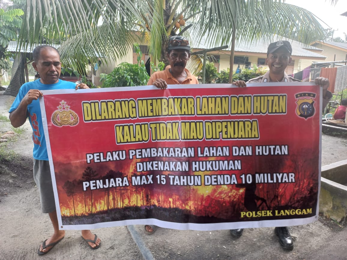 Personel Polsek Langgam mengimbau warga agar tidak membuka lahan dengan cara dibakar dan mengingatkan bahwa tindakan tersebut melanggar hukum serta dapat dikenakan sanksi pidana.