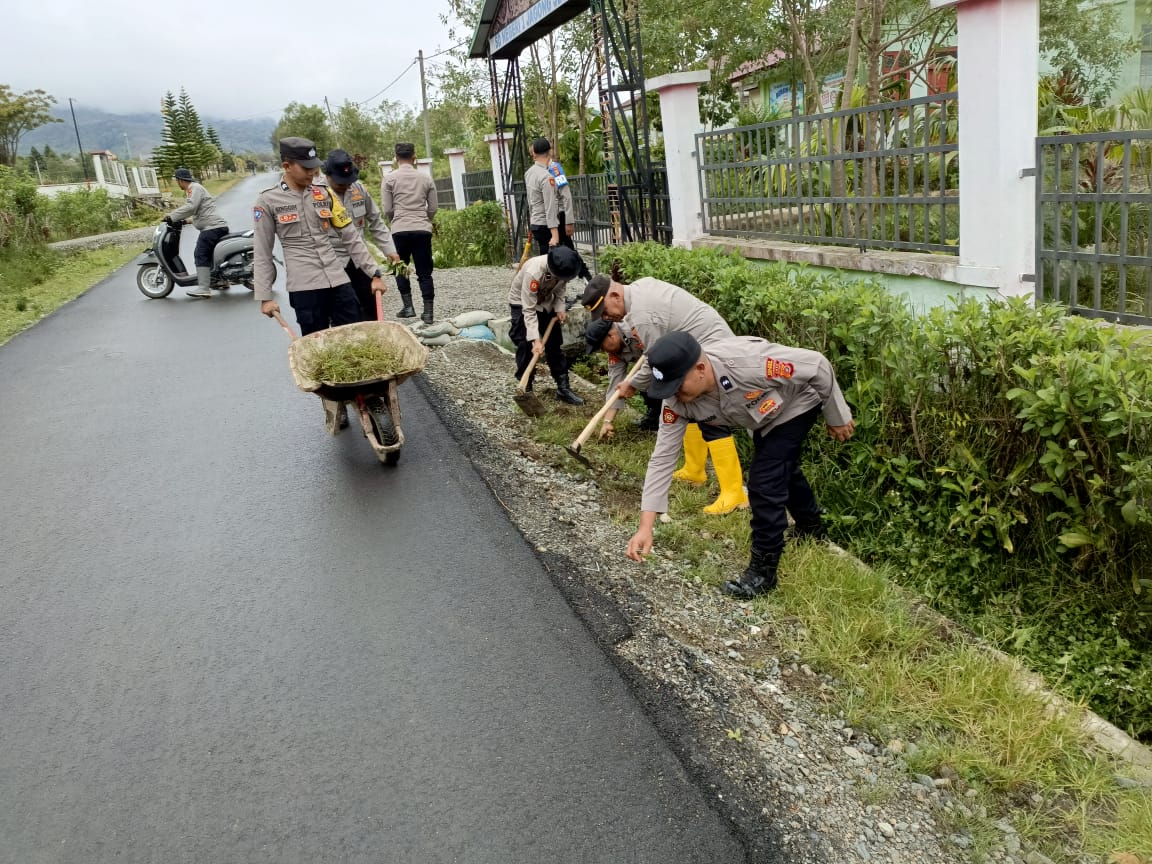 Personel Polres Aceh Tengah bersama BKO dari Brimob Polda Aceh kembali melaksanakan kegiatan kurve (kerja bakti) di dua fasilitas pendidikan sebagai bagian dari upaya pemulihan pascabencana sekaligus penguatan budaya lingkungan bersih.