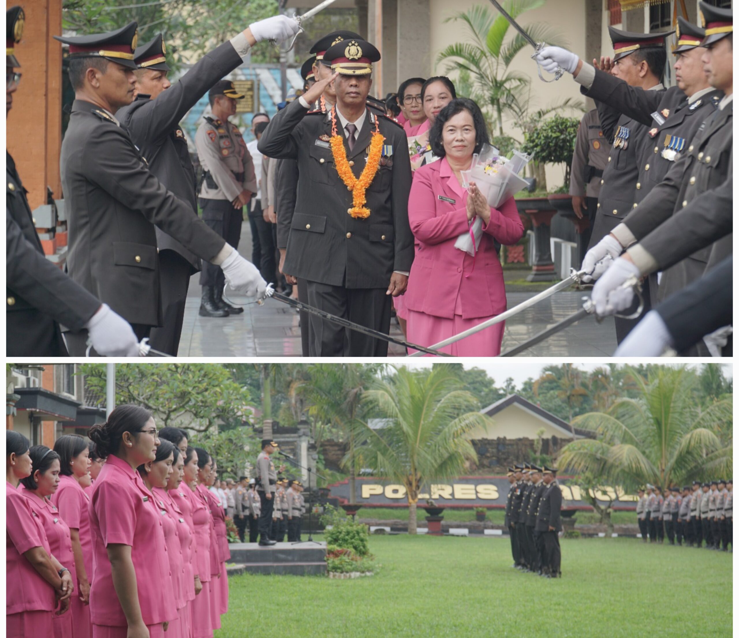 Acara ini dihadiri oleh Pejabat Utama Polres Bangli, Ketua Bhayangkari Cabang Bangli dan pengurus, personel Polres Bangli dan PNS dipimpin langsung oleh Kapolres Bangli, AKBP I Gede Putra, S.H., S.I.K., M.H., selaku Inspektur Upacara.