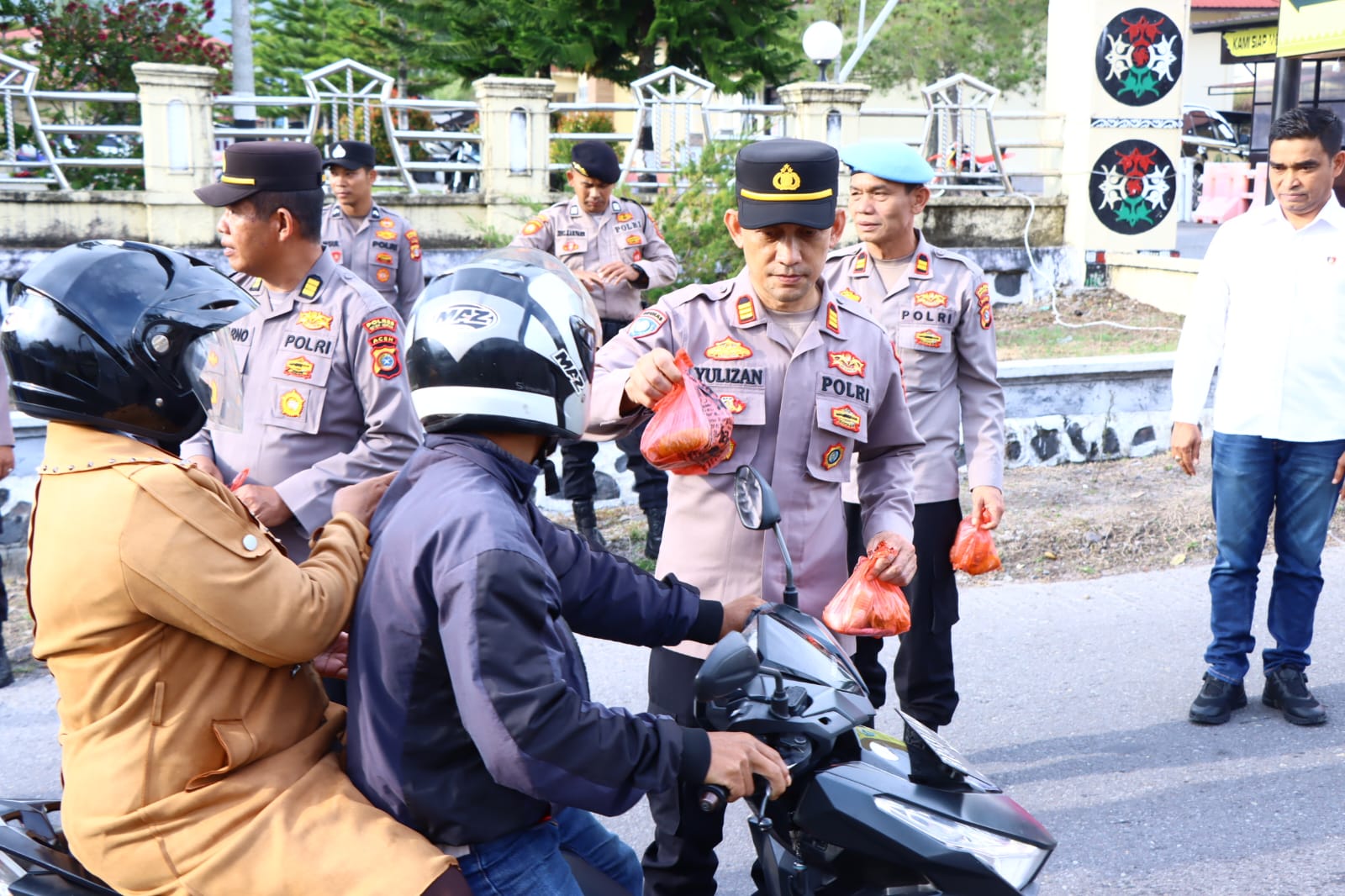 Sebanyak Ratusan takjil dibagikan kepada warga yang melintas di depan Mako Polres Bener Meriah, Selain berbagi takjil, kegiatan ini juga menjadi ajang bagi Polres Bener Meriah untuk menyampaikan pesan-pesan kamtibmas kepada masyarakat.