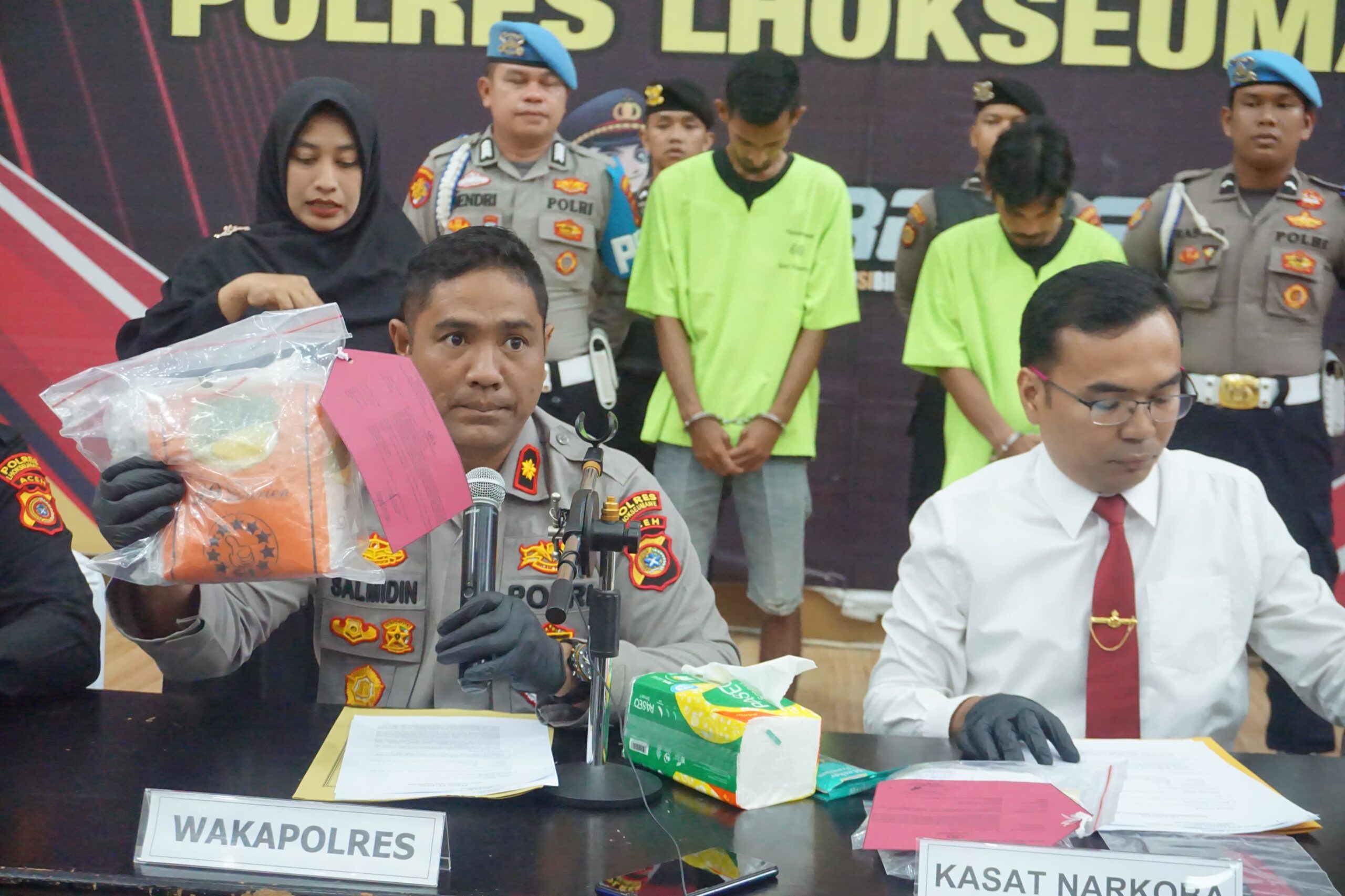 Satuan Reserse Narkoba Polres Lhokseumawe kembali menunjukkan keseriusannya dalam memberantas peredaran narkotika di wilayah hukumnya. Dalam dua kasus berbeda, petugas berhasil menggagalkan upaya peredaran sabu dengan total barang bukti mencapai lebih dari 1,1 kilogram dan menangkap dua tersangka.