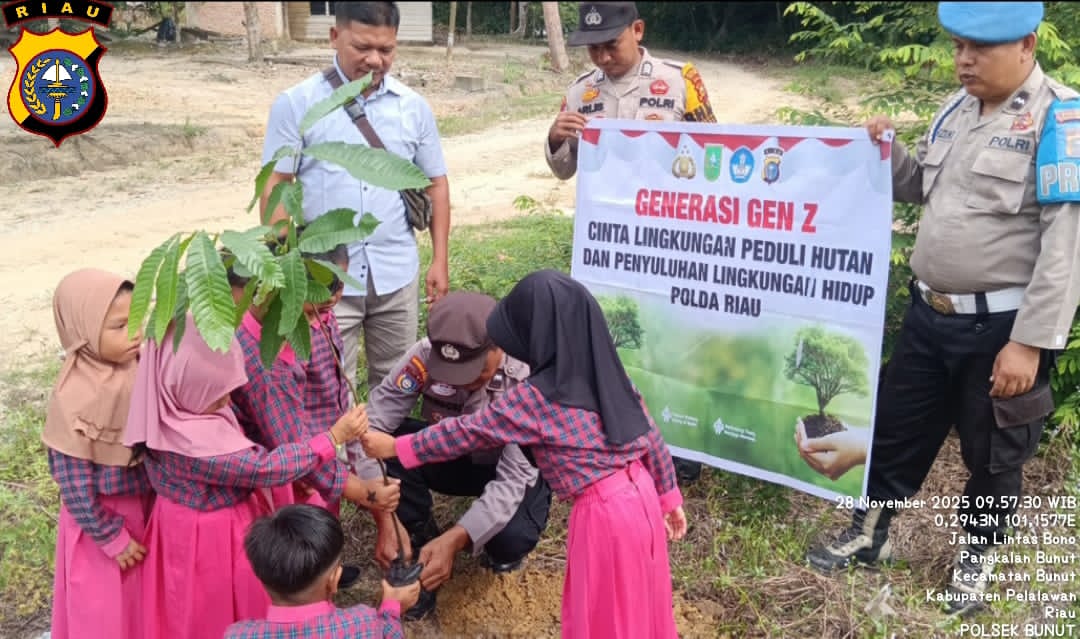 Polsek Bunut melaksanakan kegiatan penanaman bibit pohon pada Jumat, 28 November 2025, pukul 09.30 WIB di TK Al Bainur, Desa Merbau, Kecamatan Bunut, Kabupaten Pelalawan. Kegiatan ini merupakan bagian dari program penghijauan lingkungan dan dukungan terhadap kelestarian alam di Riau.
