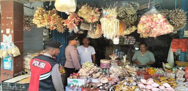 Perwira Pengawas (Pawas) Iptu I Wayan Subagia, S.H., besama Piket Fungsi melaksanakan Patroli dalam mengantisipasi Hari Umanis Galungan pada obyek vital dan tempat keramaian/pasar.