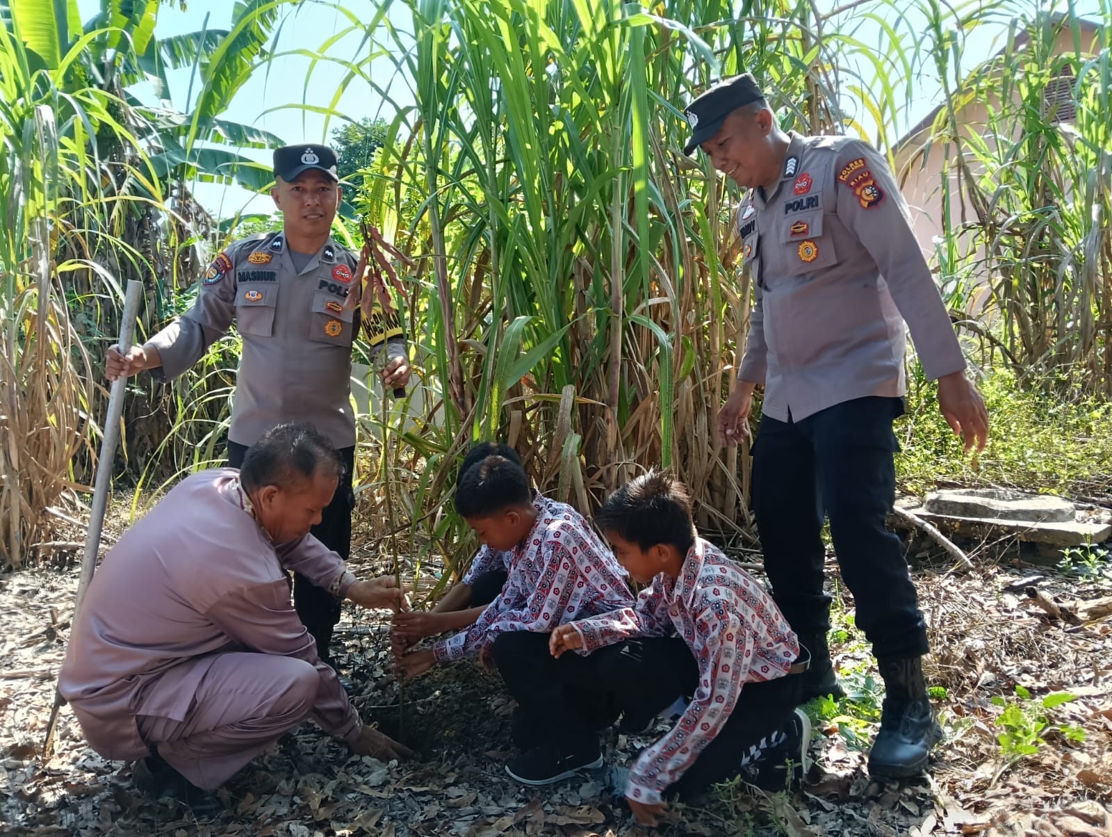 Sebanyak 4 bibit pohon, terdiri dari 2 bibit pohon pokat dan 2 bibit pohon durian, ditanam oleh Kapolsek Kerumutan, IPDA Muhammad Ali Shodiq, bersama anggota Polsek Kerumutan, para guru, dan anak-anak SDN 019.