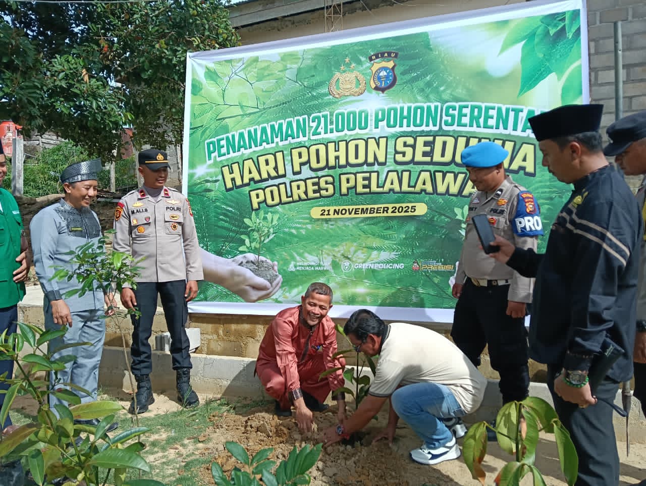 Polsek Kerumutan, Polres Pelalawan, menggelar penanaman pohon serentak di halaman Mako dan asrama Polsek Kerumutan, Jumat (21/11/2025). Kegiatan ini digelar dalam rangka memperingati Hari Pohon Nasional dan mendukung program Kapolda Riau untuk kelestarian lingkungan.