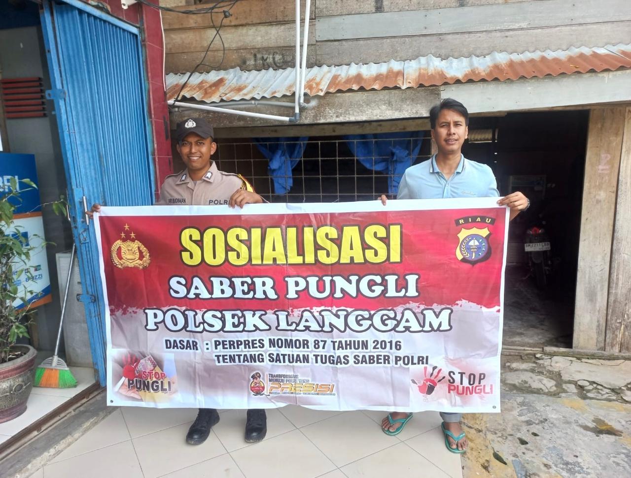 Jajaran Polsek Langgam melaksanakan sosialisasi Saber Pungli dan pencegahan pungutan liar, Rabu, 25 Februari 2026. Kegiatan dipimpin oleh AIPDA Ari Budiman bersama satu personel Polsek Langgam di wilayah hukum Kecamatan Langgam.