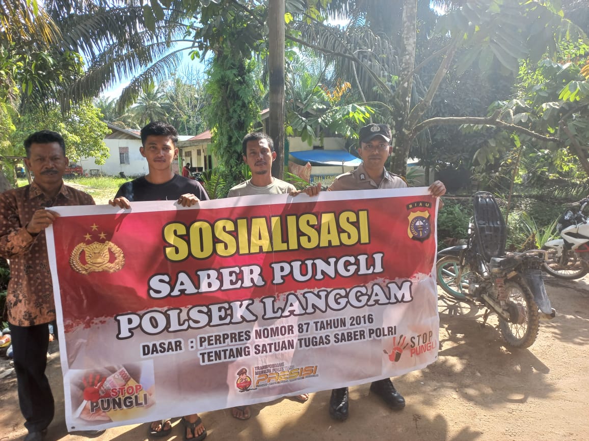 Kepolisian Sektor (Polsek) Langgam menggelar sosialisasi Sapu Bersih Pungutan Liar (Saber Pungli) kepada masyarakat dan pengguna layanan publik di wilayah Kecamatan Langgam, Kabupaten Pelalawan, Riau, pada Minggu pagi, 13 Juli 2025.