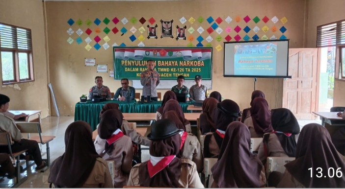 18 Oktober 2025 — Polsek Linge menghadiri sekaligus mengisi kegiatan penyuluhan bahaya penyalahgunaan narkoba, penyuluhan hukum, dan Kamtibmas dalam rangka program TNI Manunggal Membangun Desa (TMMD) ke-126 Kodim 0106/Aceh Tengah. Kegiatan tersebut berlangsung di SMA Negeri 18 Takengon Isaq, Kampung Kute Baru, Kecamatan Linge, Kabupaten Aceh Tengah.