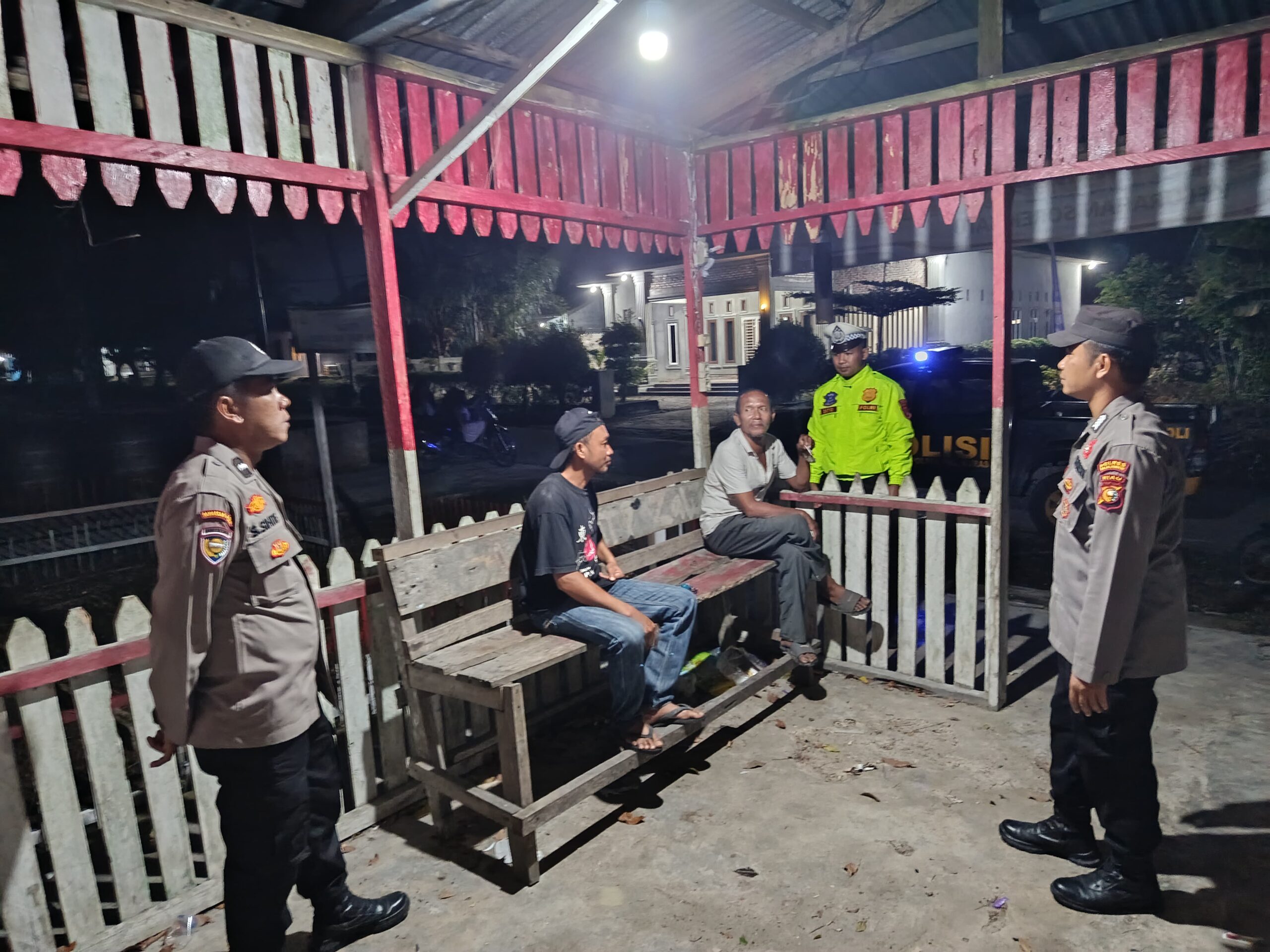 Guna memastikan situasi keamanan dan ketertiban masyarakat (harkamtibmas) tetap kondusif, jajaran Polsek Pangkalan Kuras, Polres Pelalawan melaksanakan pengecekan Pos Kamling di Kampung Melati, Kelurahan Sorek Satu, Kecamatan Pangkalan Kuras, Senin (23/2/2026) malam.