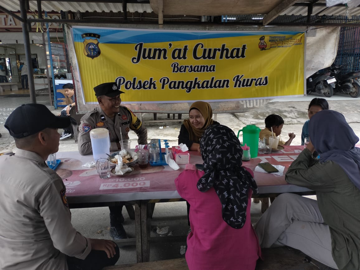 Polsek Pangkalan Kuras menggelar kegiatan Jum’at Curhat yang merupakan bagian dari program Quick Wins Kapolri, pada Jumat (4/7/2025). Kegiatan ini dilaksanakan pada pukul 10.40 WIB, bertempat di warung sarapan pagi depan toko Rotte, Jalan Lintas Timur, Kelurahan Sorek Satu, Kecamatan Pangkalan Kuras.