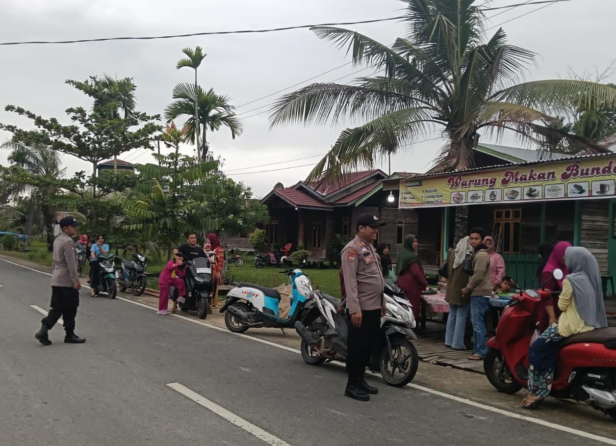 Jajaran Polsek Teluk Meranti melaksanakan pengamanan dan pengaturan lalu lintas (PKM/gatur lalin) di kawasan Pasar Ramadhan, Minggu, 22 Februari 2025, mulai pukul 17.00 hingga 18.00 WIB.