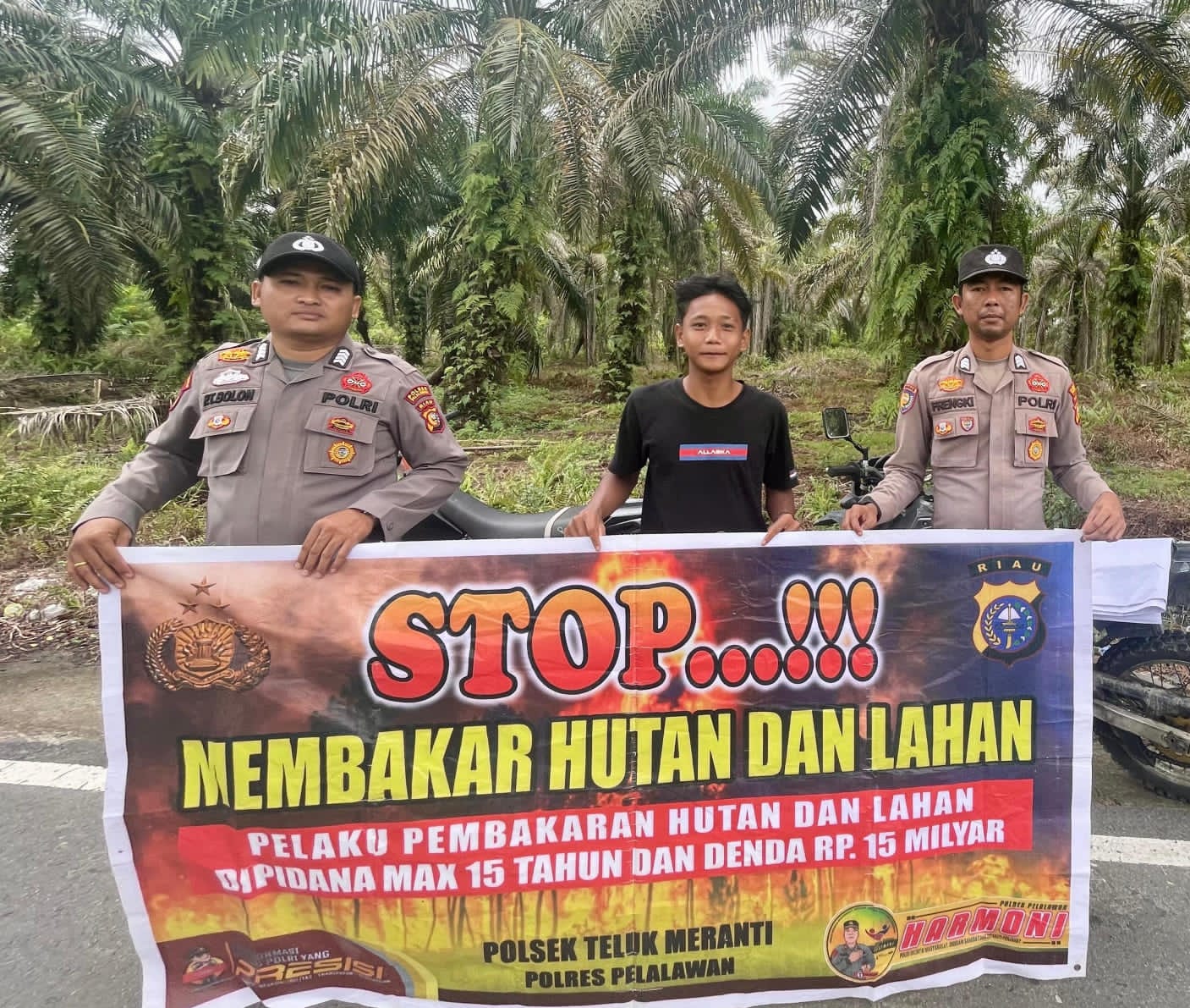 Polsek Teluk Meranti terus meningkatkan upaya pencegahan kebakaran hutan dan lahan (Karhutla) di wilayahnya. Rabu (1/4/2026), sekira pukul 13.00 WIB, petugas melaksanakan penyebaran Maklumat Kapolda Riau sekaligus kegiatan pembinaan penyuluhan (Binluh) kepada masyarakat yang memiliki lahan perkebunan di Jalan Lintas Bono, Kelurahan Teluk Meranti.
