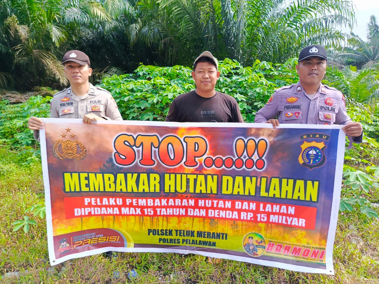 Personel Polsek Teluk Meranti melaksanakan kegiatan penyebaran maklumat Kapolda Riau sekaligus pembinaan dan penyuluhan (Binluh) untuk mencegah kebakaran hutan dan lahan (Karhutla) di wilayah hukum Polsek Teluk Meranti. Kegiatan tersebut berlangsung pada Minggu (26/10/2025) sekitar pukul 13.00 WIB.