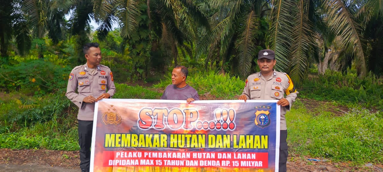 Personel Polsek Teluk Meranti memberikan himbauan langsung kepada warga agar tidak membersihkan lahan dengan cara membakar, tidak membuang puntung rokok sembarangan, serta menjaga lahan miliknya agar terhindar dari kebakaran.