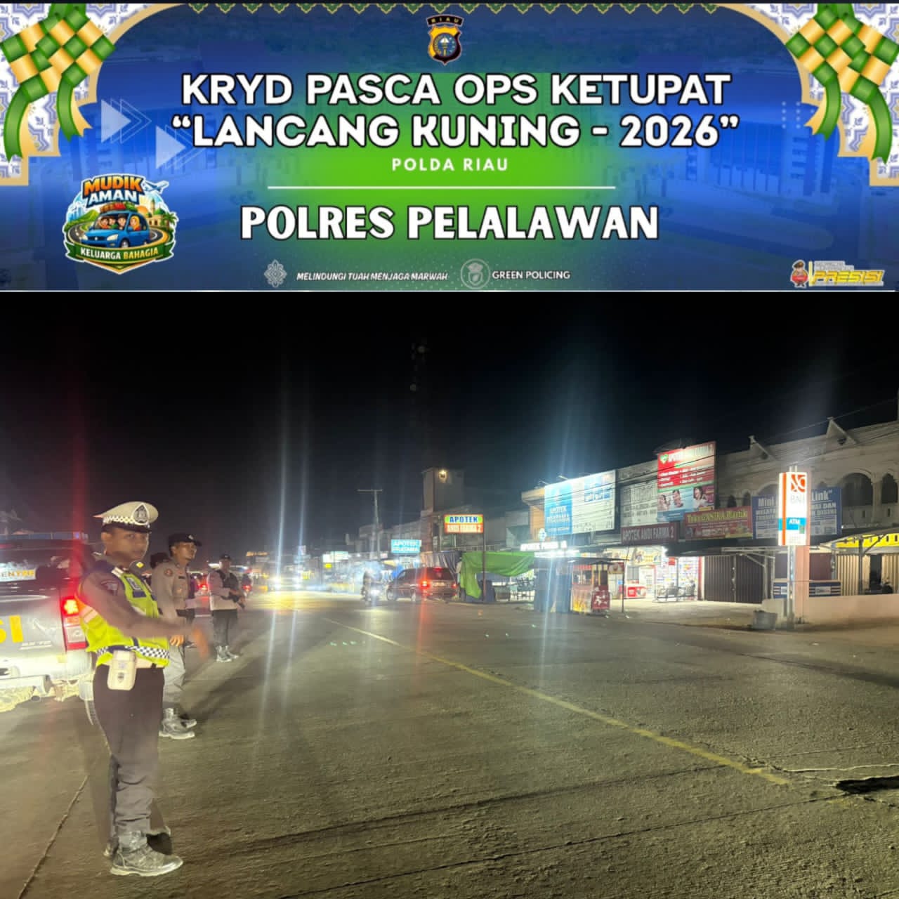 Dalam rangka menjaga situasi keamanan dan ketertiban masyarakat (Kamtibmas) pasca pelaksanaan Operasi Ketupat Lancang Kuning 2026, jajaran Polsek Ukui bersama Pos Pengamanan (Pos Pam) Nilam Sari terus menggencarkan Kegiatan Rutin Yang Ditingkatkan (KRYD), Jumat (27/3/2026) malam.