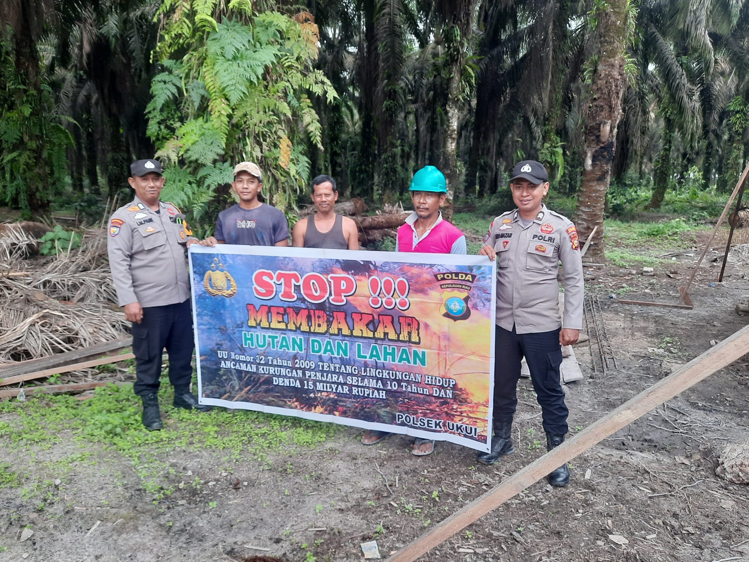 Dalam rangka mengantisipasi terjadinya kebakaran hutan dan lahan (karhutla), Bhabinkamtibmas bersama personel Polsek Ukui melaksanakan patroli serta memberikan himbauan kepada masyarakat di wilayah Kecamatan Ukui, Kamis (8/1/2026).