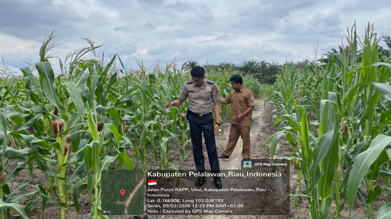 Dalam rangka mendukung Program Asta Cita Presiden Republik Indonesia di bidang ketahanan pangan, Polsek Ukui melalui Bhabinkamtibmas Desa Air Hitam melaksanakan kegiatan pengecekan dan monitoring lahan jagung pipil milik Kelompok Tani Maju Bersama, Senin (09/02/2026).