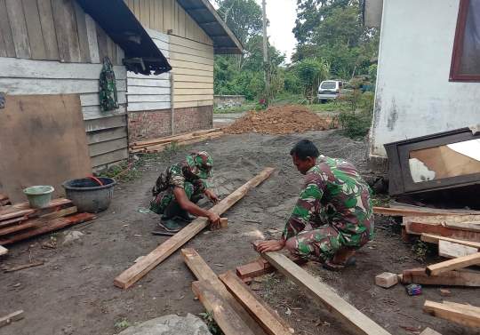 Proses pengerjaan dilakukan dengan penuh semangat oleh personel Satgas TMMD yang berkolaborasi erat bersama warga sekitar. Salah satu sosok yang turut menjadi garda terdepan dalam pembangunan ini adalah Sertu Riswandi, prajurit tertua yang terlibat langsung dalam proses pembangunan rumah warga tersebut.