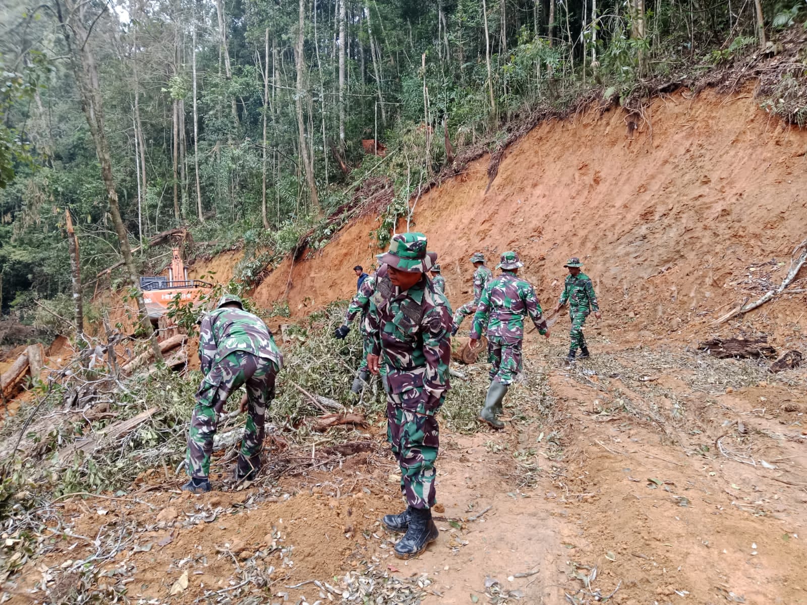 Satgas TMMD ke-126 Kodim 0106/Aceh Tengah melaksanakan gotong royong bersama warga membersihkan pohon di sepanjang jalur sasaran TMMD yaitu di Titik nol, terus berlanjut, memasuki hari ke 9 untuk membersihkan rute penyiapan badan jalan dengan di bantu alat berat Excavator bertempat di desa kute keramil. Kec. Linge. Kab Aceh Tengah.Kamis (16/10/25)
