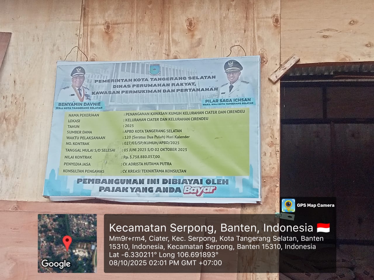 Tangsel ll 1fakta.com ll Proyek pembangunan balai warga di jl.tandon Ciater Kelurahan ciater Kecamatan Serpong Tangerang Selatan ,yang menelan anggaran Rp,3.758.880.057,00 dari APBD kota Tangerang Selatan Tahun Anggaran 2025 .kini menuai sorotan tajam dari berbagai kalangan control sosial dan masyarakat, pekerjaan yang di laksanakan oleh CV .ADRISTA HUTAMA PUTRA di Duga sarat penyimpangan teknis dan lemah nya pengawasan dari instansi terkait..selasa 14/10/2025