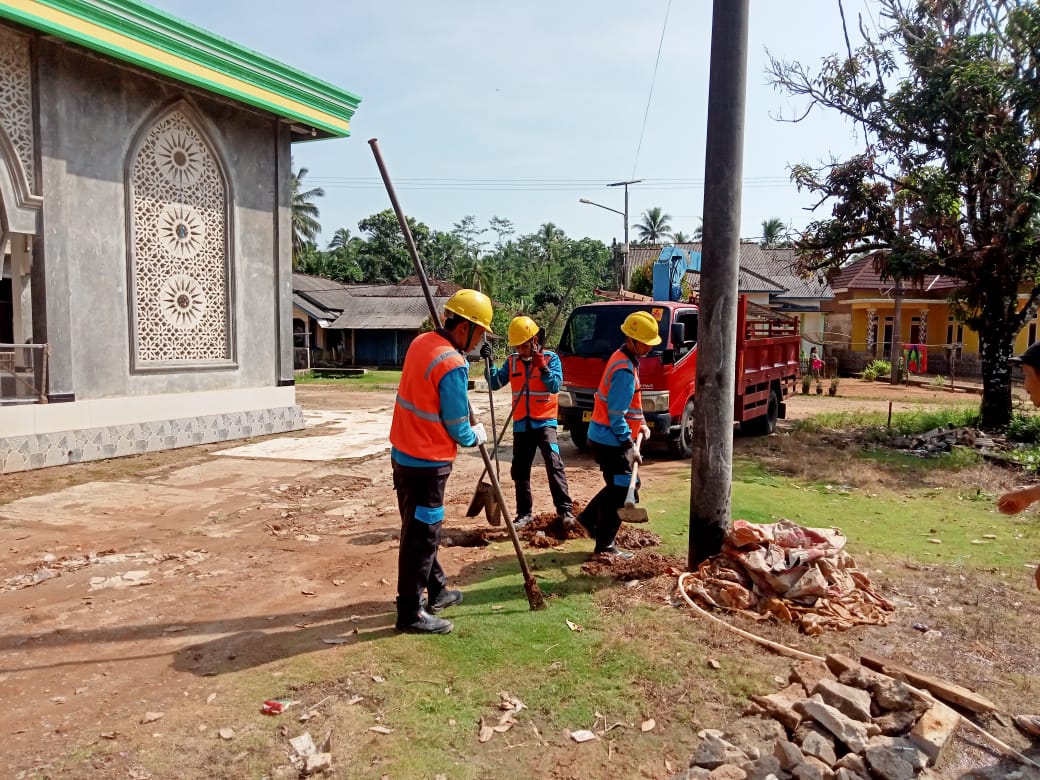 PLN posko cibaliung cabang Persero ULP unit labuan Pandeglang Banten lakukan kegiatan penggeseran tiang milik PLN di kp ci undil RT / RW 03 /01 desa Waringin kurung ci manggu , yang menghubungkan akses jalur keluar masuk, jamaah masjid Al – ikhlas dengan siswa siswi sekolah SDN Waringin kurung 2,