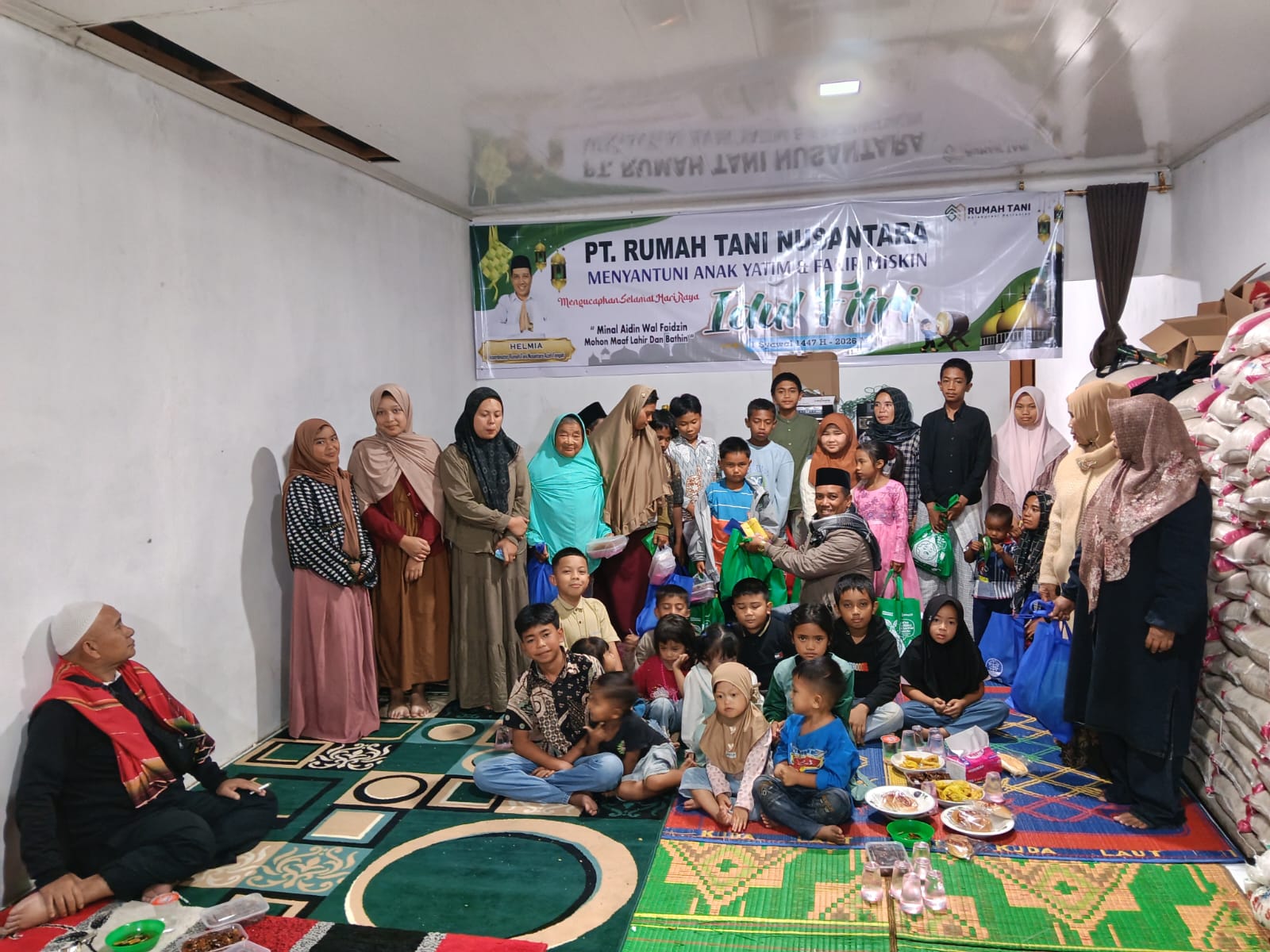 Dalam kegiatan tersebut, PT Rumah Tani Nusantara menyalurkan sekitar 100 paket bingkisan yang berisi berbagai kebutuhan, di antaranya kain sarung, mukena, sirup, roti, kurma, serta aneka makanan ringan.