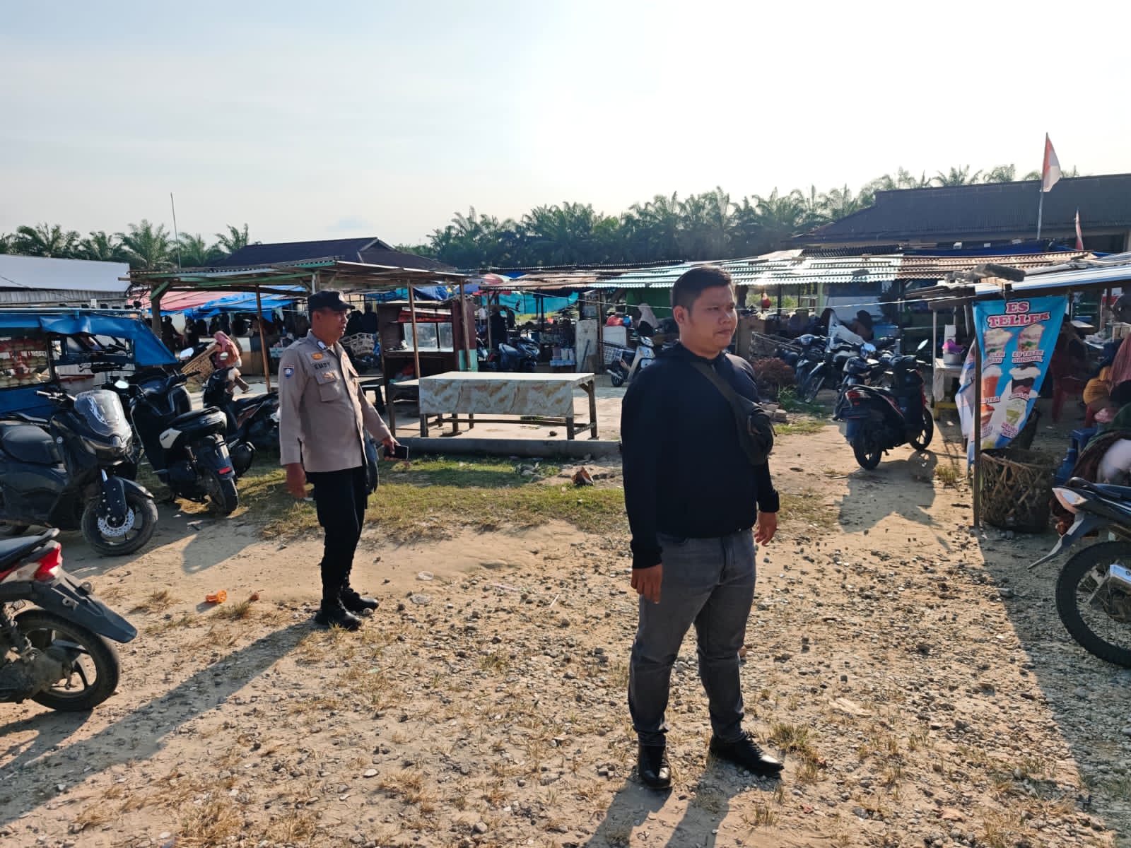 Sejumlah personel Polsek Kerumutan melakukan pengaturan lalu lintas dan penertiban selama Ramadhan di Pasar Ramadhan Desa Bukit Lembah Subur, Kecamatan Kerumutan, Rabu (11/3/2026). Kegiatan ini berlangsung mulai pukul 16.30 hingga 18.00 WIB dan bertujuan untuk menciptakan keamanan serta kenyamanan bagi pedagang dan pengunjung pasar.