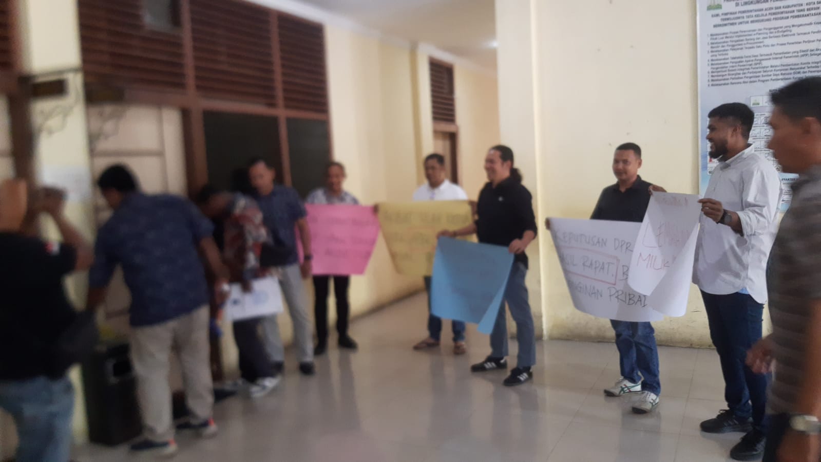 Tampak ruang kerja disegel dengan memasang palang kayu di depan pintu ruang kerja ketua DPRK Langsa Melvita Sari serta memasang foster bertuliskan, “Ganti ketua DPRK” , “ Lembaga ini bukan milik pribadi” , “Banyak kepentingan rakyat yang menjadi terkorban akibat perwal” , “Keputusan DPRK hasil rapat bukan kepentingan pribadi” dan banyak lagi tulisan yang ditempelkan dengan mengunakan kertas karton.