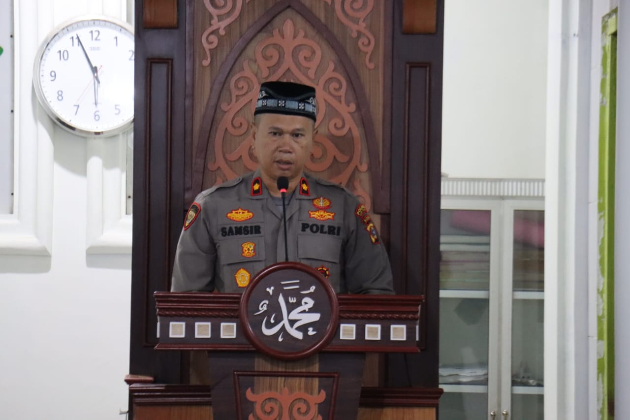 “Marilah sama-sama utk menjaga diri kita sendiri, keluarga dan masyarakat utk senantiasa menjauhi perbuatan-perbuatan di larang oleh Allah SWT.”tutup Kompol Samsir, dilanjutkan pemberian cinderamata pada pengurus masjid.