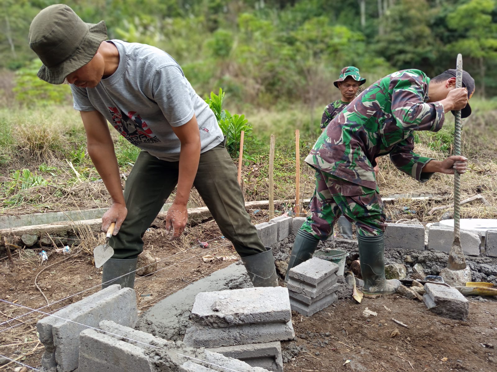 Menurutnya, hingga saat ini pekerjaan masih difokuskan pada tahap pembuatan pondasi dan pemasangan dinding bangunan. Meski kondisi cuaca beberapa hari terakhir cukup menantang, semangat para prajurit dan warga tetap tinggi demi menyelesaikan sasaran fisik sesuai target yang ditetapkan.