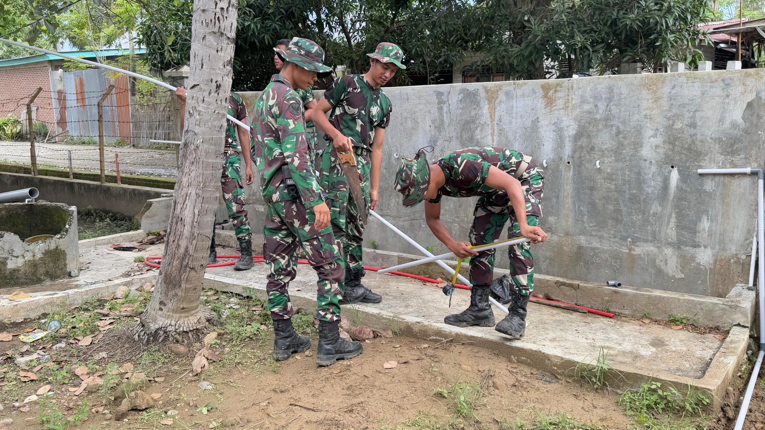 Anggota Satuan Tugas (Satgas) TNI Manunggal Membangun Desa (TMMD) Ke-123 Kodim 0111/Bireuen terus berupaya meningkatkan kesejahteraan masyarakat melalui penyediaan infrastruktur air bersih. Salah satu wujud nyata dari upaya tersebut adalah pemasangan pipa dan kran air pada sumur bor yang telah dibangun di Desa Meunasah Tambo, Kecamatan Peudada, Kabupaten Bireuen. Sabtu (15/03/2025).