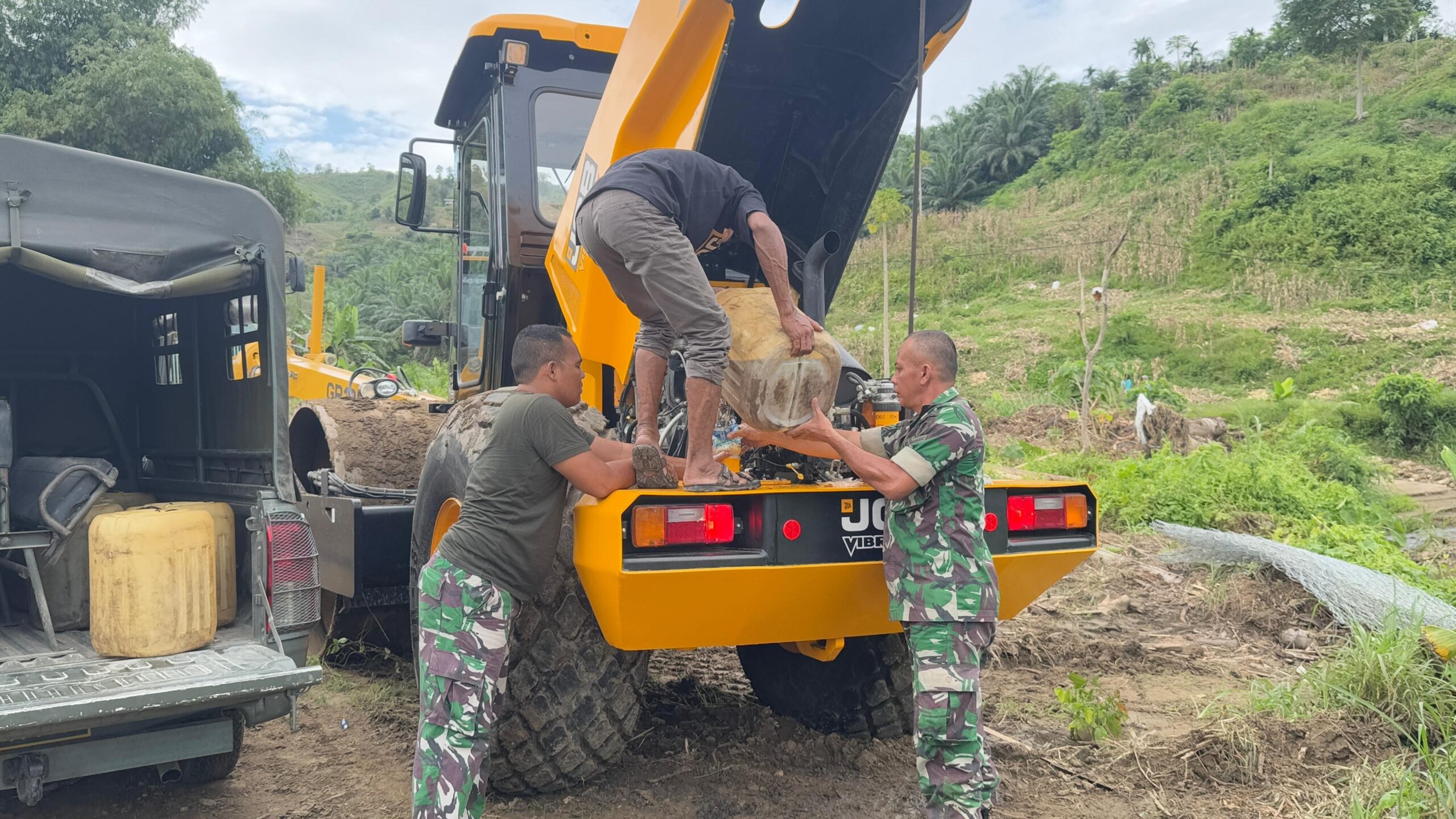 Dalam rangka memastikan kelancaran pekerjaan fisik pada program TNI Manunggal Membangun Desa (TMMD) Ke-123, anggota Satuan Tugas (Satgas) TMMD Kodim 0111/Bireuen melaksanakan pengisian bahan bakar minyak (BBM) untuk alat berat yang digunakan dalam pembangunan infrastruktur desa. Kegiatan ini dilakukan guna memastikan operasional alat berat tetap optimal di lokasi kerja. Sabtu (15/03/2025).
