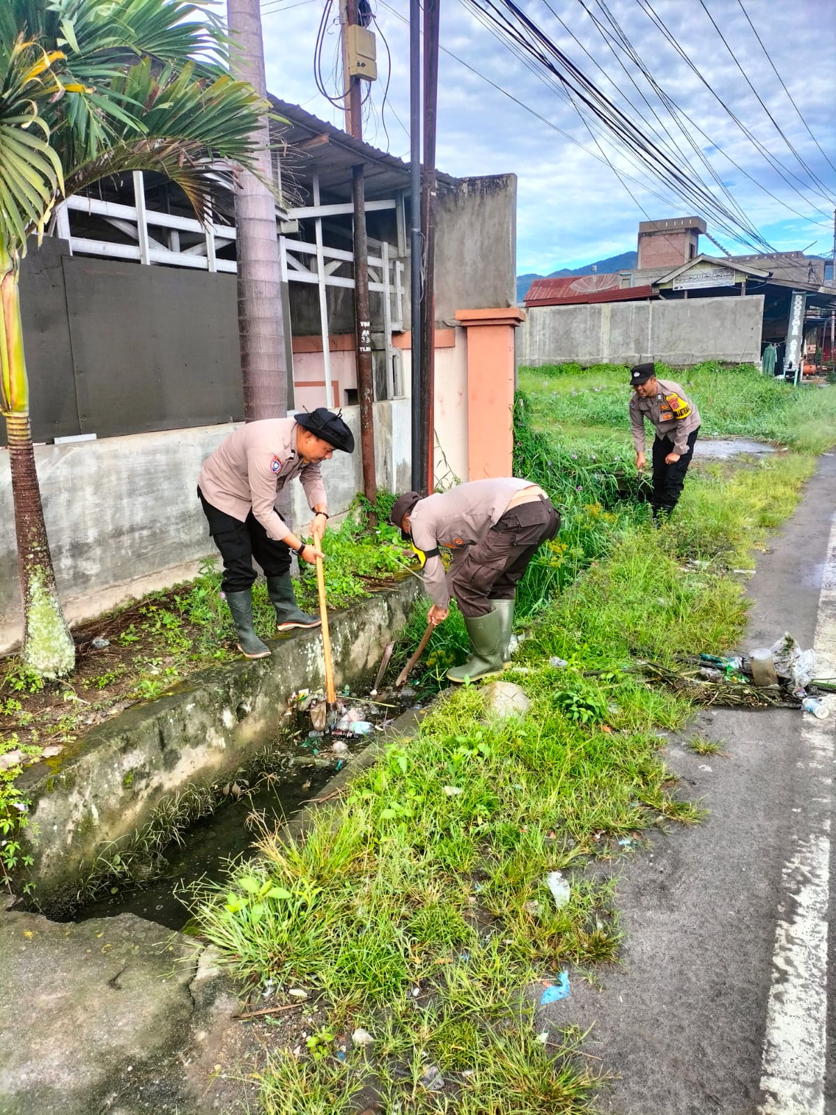 Satuan Lalu Lintas (Satlantas) Polres Aceh Tengah bersama Polsek Bebesen menggelar gotong royong pembersihan drainase di Kampung Blangkolak II, Kecamatan Bebesen, Jumat (10/4/2026) pagi.