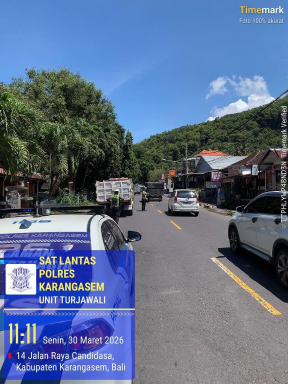 Dalam upaya menjaga ketertiban dan keamanan lalu lintas, Satuan Lalulintas Polres Karangasem Unit Regident melaksanakan patroli dan himbauan terhadap sopir truk Pada hari ini Senin, 30 Maret 2026.