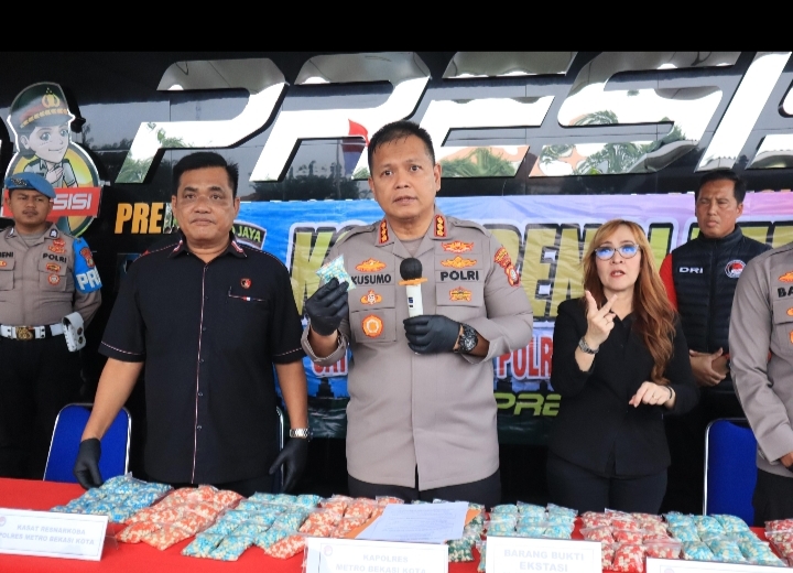 BEKASI,1Fakta.com  – Satresnarkoba Polres Metro Bekasi Kota mengungkap jaringan peredaran narkotika lintas daerah yang beroperasi di wilayah Bekasi, Bogor, dan Depok. Dari pengungkapan tersebut, polisi menyita ribuan butir ekstasi, sabu, tembakau sintetis, hingga menangkap satu tersangka.