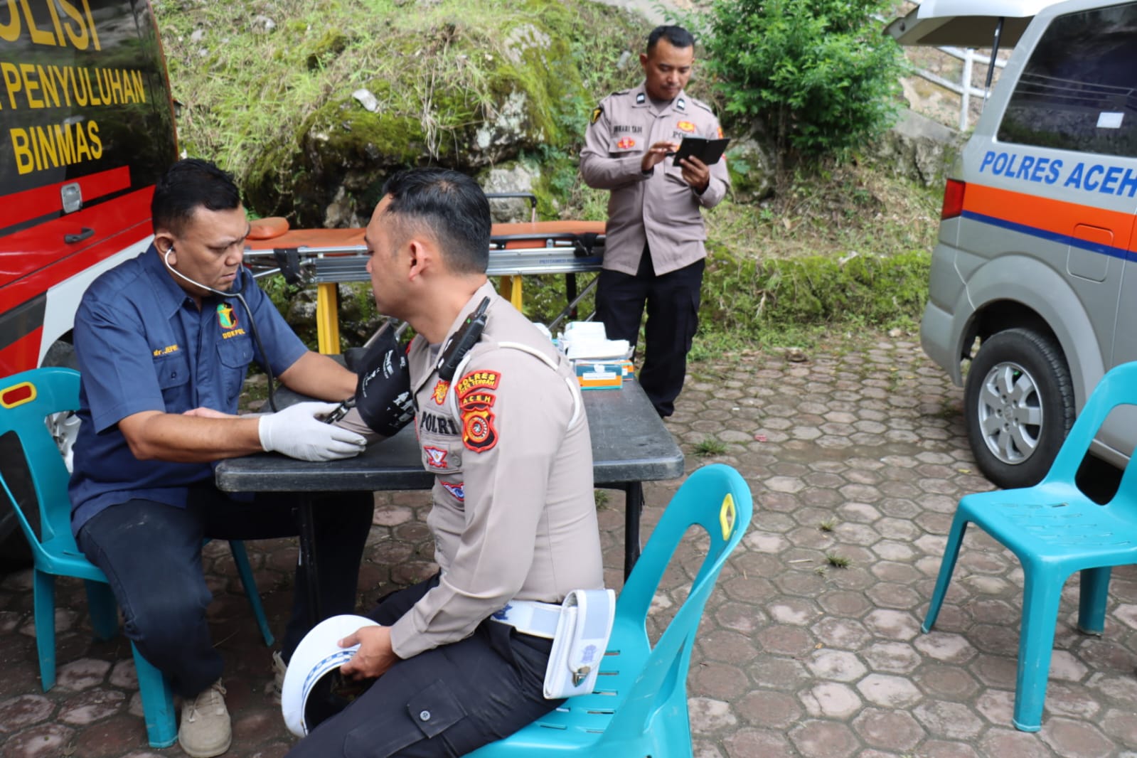 Sie Dokkes Polres Aceh Tengah memberikan pelayanan pengecekan secara gratis kepada pemudik dan maupun di jalur tempat wisata.