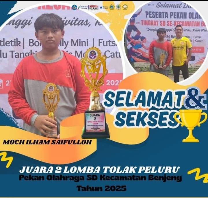 Gresik |Jatim| 27 Oktober 2025 ,  Siswa berprestasi dari SDN 112 Metatu Gresik, Moch Ilham Saifulloh, berhasil menorehkan prestasi gemilang dengan meraih Juara 2 cabang olahraga Tolak Peluru pada ajang Pekan Olahraga SD se-Kecamatan Benjeng Tahun 2025.