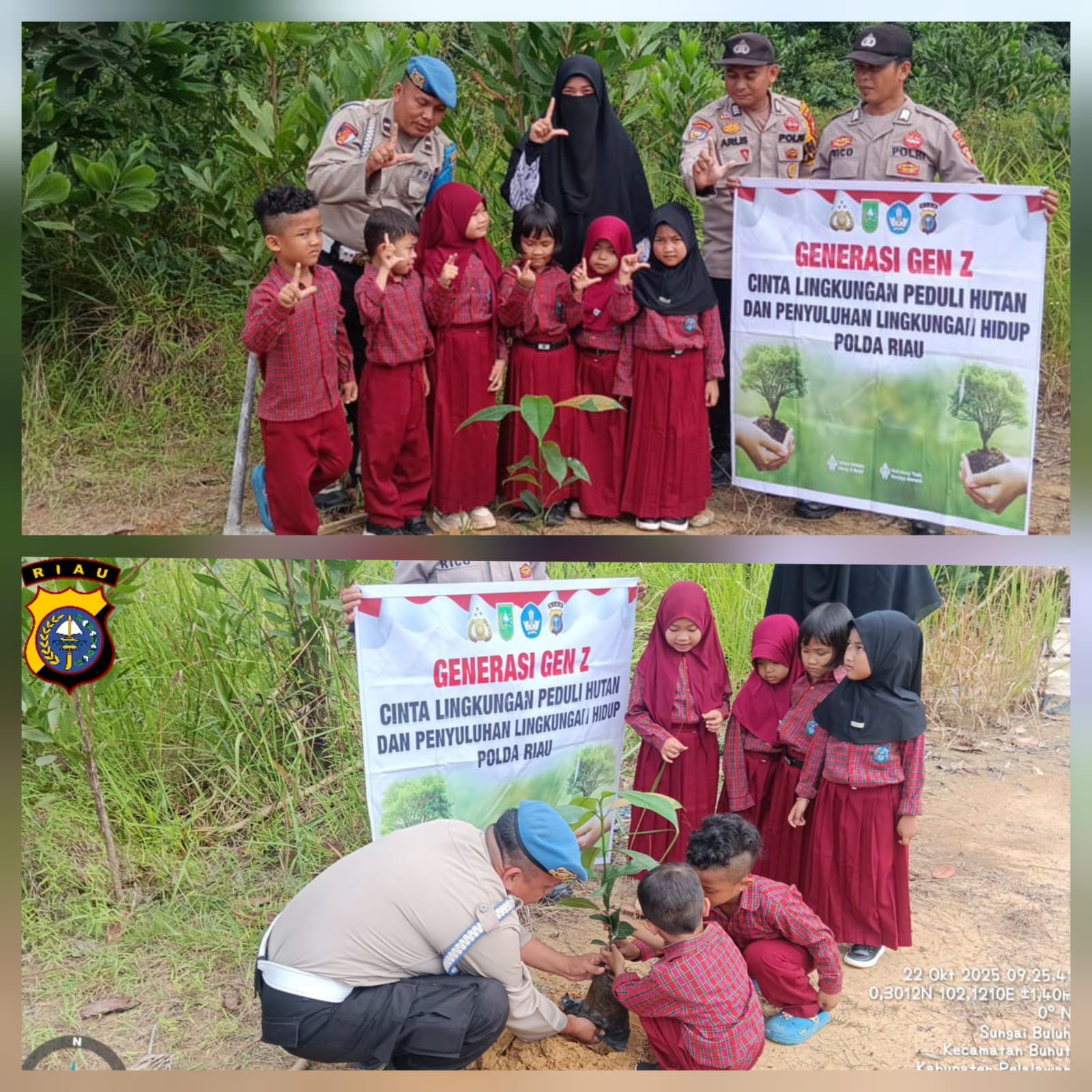 Kepolisian Sektor Bunut kembali menunjukkan komitmennya dalam mendukung program pelestarian lingkungan. Rabu pagi, 22 Oktober 2025, jajaran Polsek Bunut melaksanakan kegiatan penanaman bibit pohon di halaman TK Sari Bunda Al Gofur, Desa Sungai Buluh, Kecamatan Bunut, Kabupaten Pelalawan.
