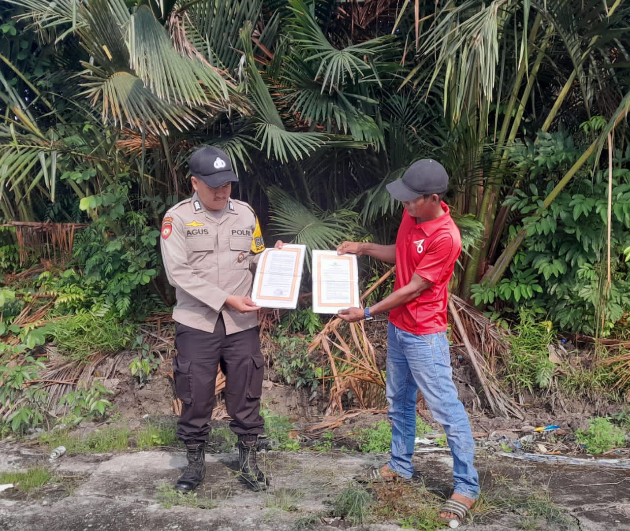Polsek Kuala Kampar melaksanakan kegiatan sosialisasi dan penyebaran Maklumat Kapolda Riau terkait pencegahan kebakaran hutan dan lahan (Karhutla) kepada masyarakat di Kelurahan Teluk Dalam, Kecamatan Kuala Kampar, Selasa, 2 Desember 2025.